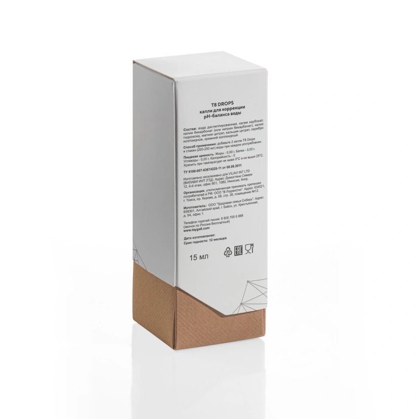 T8 DROPS позволяет быстро и безопасно получить воду с оптимальным кислотно-щелочным балансом в домашних условиях. В комплект капель T8 DROPS входят 10 тест-полосок pH.